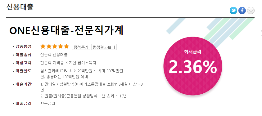 개인에 따라 금리와 한도가 천차만별인 상품이며 (개인등급, 실적, 대출금액에 따라 달라집니다) 또한  개인의 상황에  따라서 심사 거절되는 경우가 생길 수 있어요 (개인회생,파산 ,연체등 금융기관 등록된 고객) 금리 변동주기는 3/6/12개월이며 연체시 연체이자 3%가 붙고 또한 계약기간 만료전의 모든 원리금을 변제 해야 하는 경우도 생길 수 있으니 연체는 항시 주의하시는게 좋겠습니다